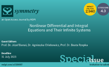 Pracownicy Katedry Analizy Nieliniowej prof. J. Banaś, dr A. Chlebowicz i dr hab. B. Rzepka pełnią funkcje Guest Editors specjalnego wydania czasopisma Symmetry.