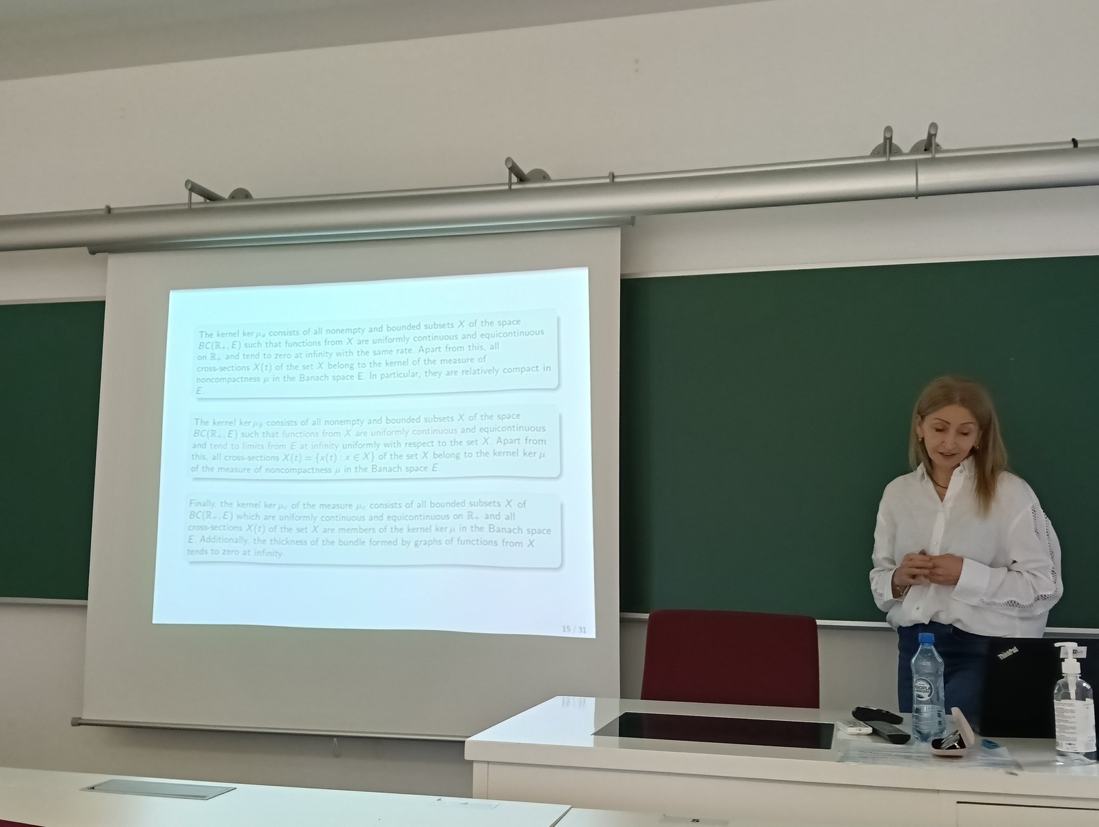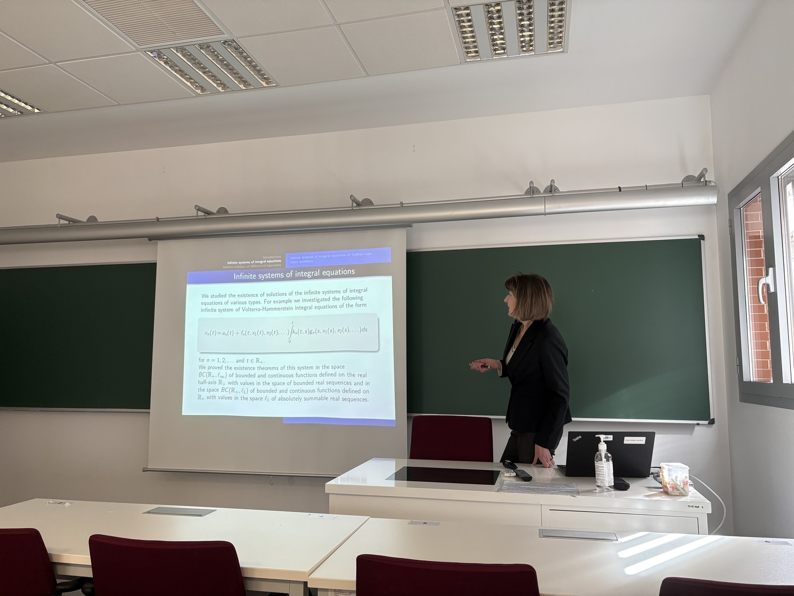 W dniach 16-21 marca 2025 roku dr hab. Beata Rzepka i dr Agnieszka Chlebowicz na zaproszenie prof. Tomasa Domingueza Benavidesa wzięły udział w warsztatach "Measures of noncompactness and Volterra equations" zorganizowanych na Wydziale Matematyki Uniwersytetu w Sewilli. W ramach warsztatów nasi pracownicy wygłosili odczyty, w których przedstawili swoje nowe osiągnięcia. Dr Agnieszka Chlebowicz wygłosiła odczyt "New measures of noncompactness and their application", zaś dr hab. Beata Rzepka wygłosiła odczyt "Infinite systems of differential and integral equations: current state and some open problems". W trakcie warsztatów odbywały się również seminaria, na których poruszono wiele ciekawych kwestii oraz otwartych problemów związanych z tematyką miar niezwartości i równań Volterry. Zaplanowano również następne warsztaty, które mają odbyć się jesienią tego roku.