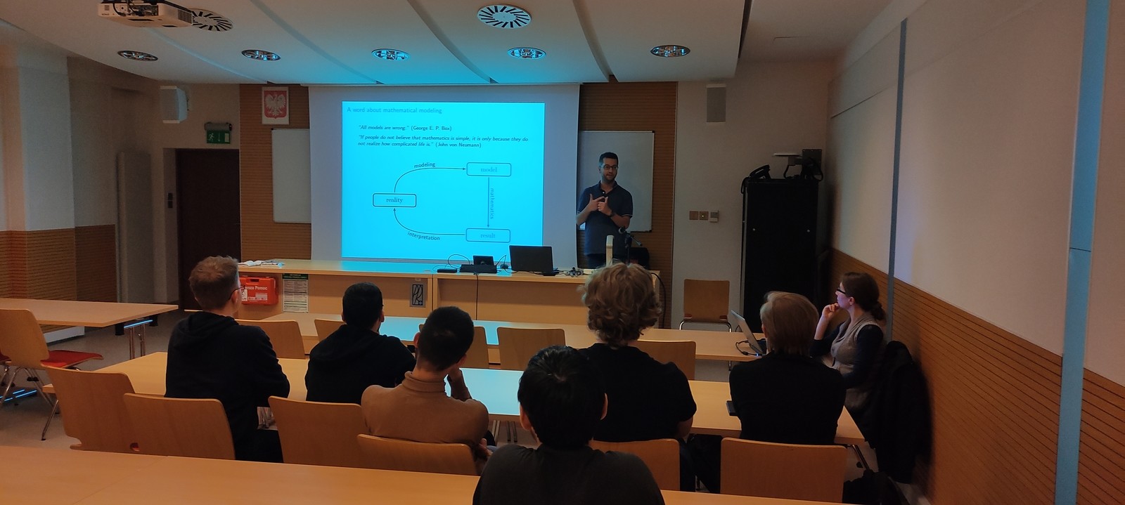 Pierwszy wykład zatytułowany „Functions with primitive” zgromadził głównie studentów kierunku matematyka, drugi wykład pod tytułem „A brief introduction to the SIR-model for pandemics” odbył się w ramach spotkania Koła Naukowego Machine Learning i został zorganizowany przez panią dr Ewę Rejwer-Kosińską. W wykładzie tym uczestniczyli studenci kierunków inżynieria i analiza danych oraz matematyka. Odczyt zakończyła długa i ciekawa dyskusja, ponieważ przedstawiona tematyka dotyczy aktualnych światowych problemów i cieszy się dużym zainteresowaniem studentów.